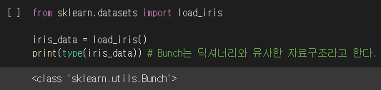 데이터 세트는 Bunch 타입이며, 이는 딕셔너리와 유사한 자료구조입니다.