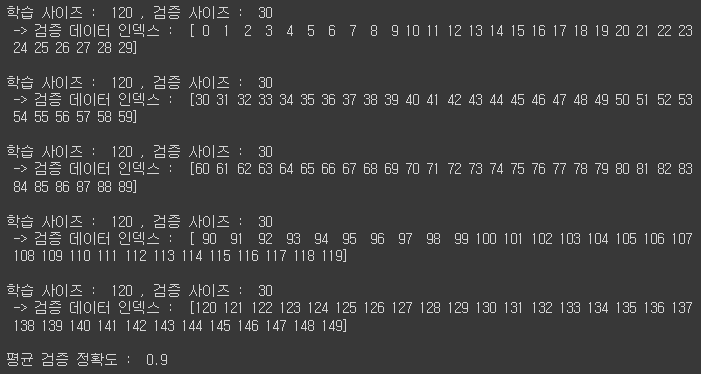 각 반복마다 검증 데이터 세트의 인덱스가 계속 바뀌는 것을 볼 수 있습니다.