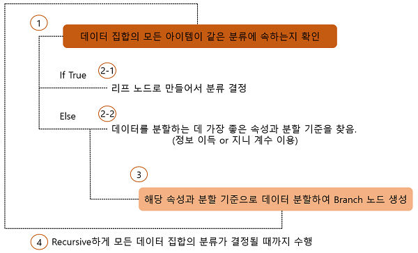 가능한 적은 규칙들(결정 노드들)로 높은 예측 정확도를 가지려면 데이터를 분류할 때 최대한 많은 데이터 세트가 해당 분류에 속할 수 있도록 하는 규칙을 찾아야 합니다. 이는 곧 최대한 균일한 데이터 세트를 구성하도록 분할하는 규칙을 뜻합니다.