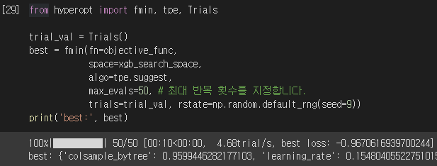 - max_evals : 최적 입력값을 찾기 위한 시도 횟수