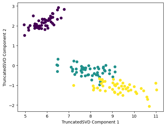 붓꽃 품종 분류 데이터 세트를 Truncated SVD를 이용하여 차원 축소 시켜봅시다.
