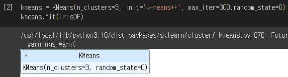 - labels_ : 각 데이터가 속한 군집 중심점 레이블