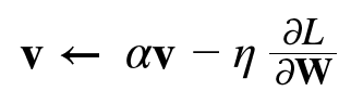 $v$라는 변수가 새로 등장하는데, 이는 물리에서 속도(velocity)이다. 첫 번째 식은 기울기 방향으로 힘을 받아 물체가 가속된다는 물리 법칙을 나타낸다. 모멘텀은 공이 그릇의 바닥을 구르는 듯한 움직임을 보여준다.