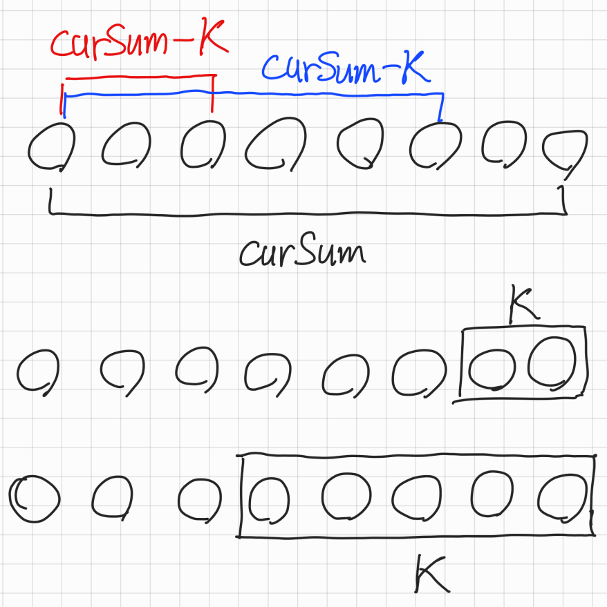 $(curSum-K)+curSum=K$이기 때문입니다.