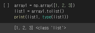ndarray는 tolist() 메서드를 통해 파이썬 리스트로 캐스팅할 수 있습니다.