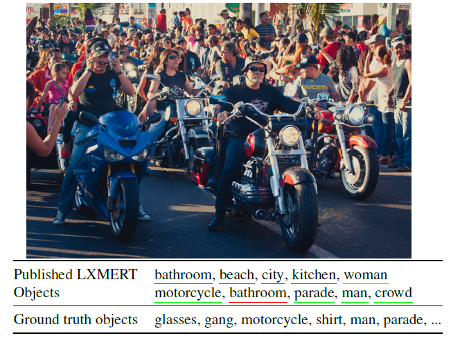 또한, 아무 word 중 하나를 마스킹하는 전략보다는, objects인 word 중 하나를 마스킹하는 Objects 마스킹 전략이 다운스트림 태스크에 대해 더 좋은 결과를 보였다.