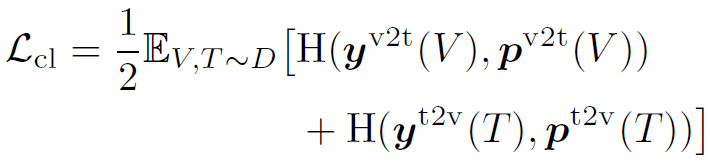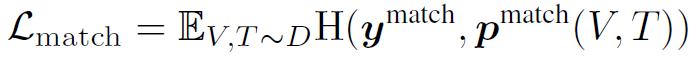 Cross-modal encoder에 매칭되지 않는 visual concept과 text 쌍, 매칭되는 쌍을 주고 매칭 여부를 예측하도록 한다. 이 또한 전형인 형태에서 벗어나지 않는다. non-mathcing visual concept / text는 $p^{v2t}(V), p^{t2v}(T)$로 샘플링한다. 즉, hard-negative sample을 뽑는다.