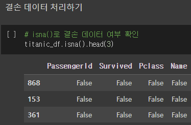 DataFrame에 isna()를 수행하면 모든 값에 대해 NaN인지의 여부를 불린값으로 반환합니다.