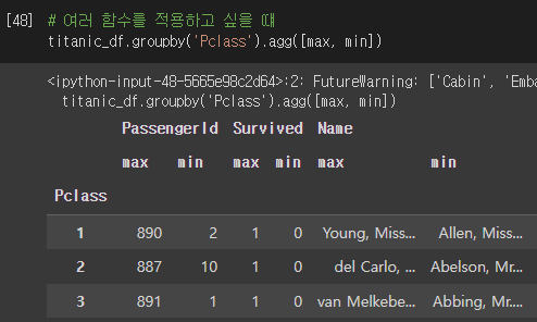 두 개 이상의 aggregation 연산을 적용하고 싶을 때는 agg() 함수의 인자에 리스트 형태로 원하는 연산을 묶어서 전달하면 됩니다.